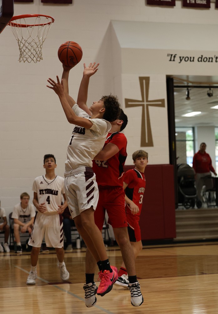 In the 8th grade game, St. Thomas followed with a 35–31 win behind a dominant performance from Cruz Madrigal, who poured in 27 points and added 7 rebounds, 6 steals, 2 assists, and a block. Bryan Le contributed 5 points, 4 rebounds, and 2 steals, while Jax Cowan hit a key three-pointer. Colton Kepple led the team with 4 assists and also had 3 steals, while Caleb Whitten grabbed 4 rebounds as the Comets maintained control despite a late Rockets rally.