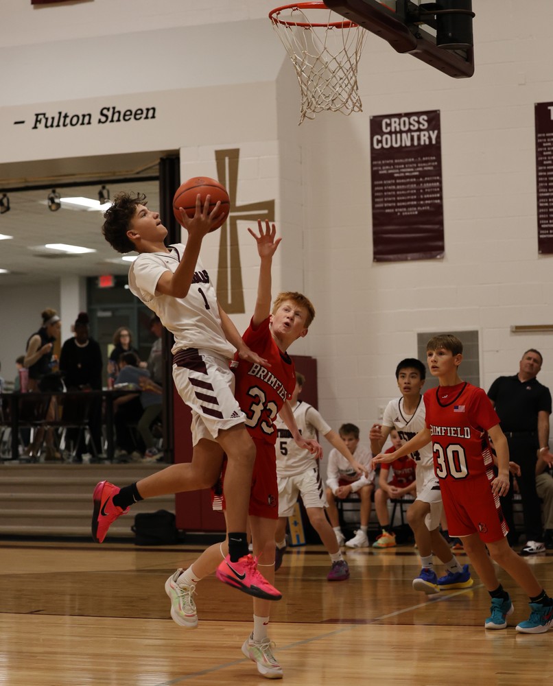 The St. Thomas 7th grade boys basketball team pulled off a dramatic 31–30 victory over the Brimfield Indians on Monday night, surviving a tense final sequence to earn their second win of the young season.